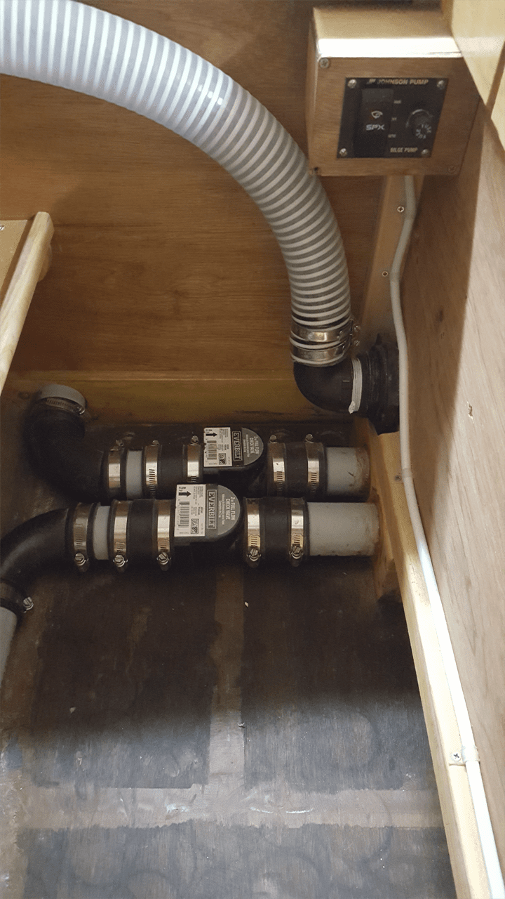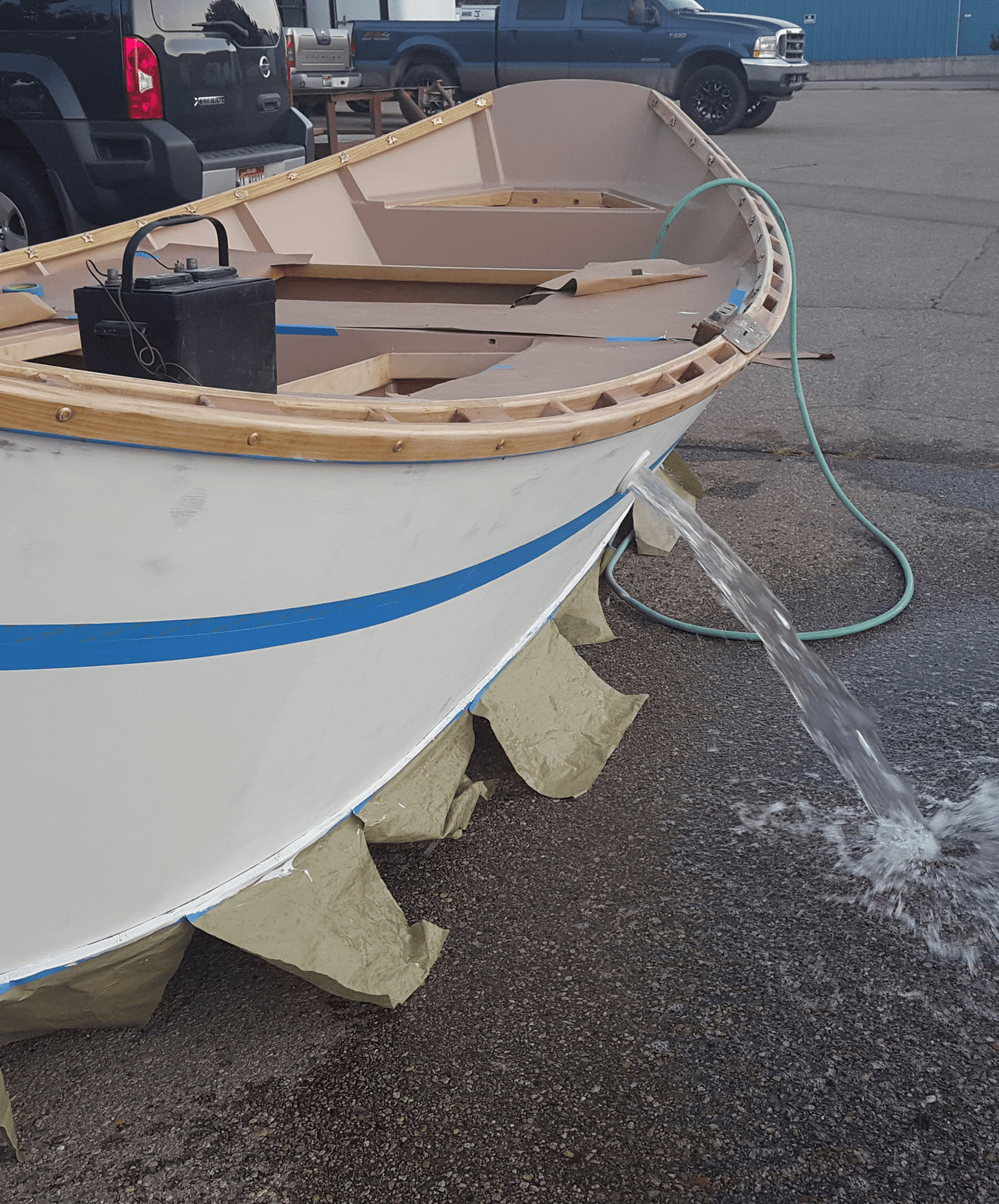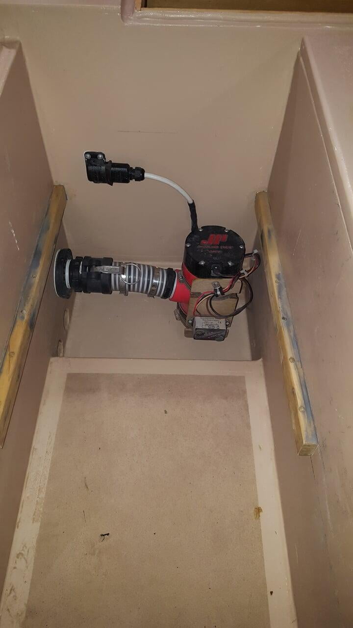 Wild Child was designed from the start to have an electric bilge pump to empty her out after each rapid. I installed a Johnson 4,000 GPH pump, a switch and a sensor to start pumping when the water is a few inches deep.